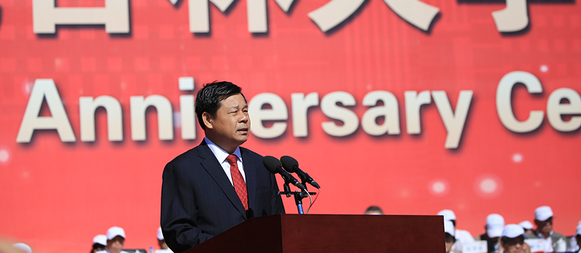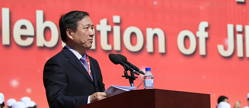 李晋修代表中共吉林省委、省政府,向吉林大学全体师生员工以及海内外广大校友致以热烈的祝贺。他在讲话中高度评价了吉林大学70年来深化改革、锐意创新、人才培养等方面取得的卓著成效,为吉林省、东北地区乃至全国的经济社会发展作出的重要贡献。他衷心希望吉林大学牢记使命,发挥优势,不忘初心,勇于担当,继续坚持关心国家命运、服务国家战略的办学方向,继续坚持以服务求发展、以贡献求发展的办学思路,紧紧围绕吉林振兴发展的大局,全面提高人才培养质量,全力推进科技创新,强化内涵式发展,为推动吉林新一轮的振兴发展贡献更大的智慧和力量。吉林省将一如既往地在资金、政策等各方面给予支持,助推吉林大学早日建成世界一流的大学。