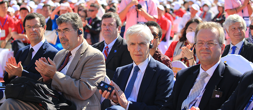 全国政协副主席王家瑞,中共吉林省委书记、省人大常委会主任巴音朝鲁,教育部党组成员、副部长杜占元,省委常委、省委秘书长张安顺,省委常委、统战部部长姜治莹,省人大副主任、省总工会主席李龙熙,副省长李晋修,省政协副主席赵吉光、刘丽娟,省政协副主席、教育厅厅长张伯军,北京大学校长林建华,荷兰格罗宁根大学校长彭浦曼,中国科学技术大学党委书记许武,大连理工大学校长郭东明,哈尔滨工业大学校长周玉,四川大学党委书记杨泉明,中国法学会副会长、吉林大学原党委书记张文显,吉林大学原党委书记陈德文,吉林大学原校长刘中树,长春市委常委、长春新区党工委书记孙亚明,长春市委常委、常务副市长张晶莹,长春市副市长桂广礼等出席庆祝大会。