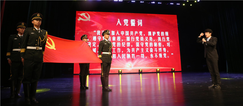 党课在铿锵有力的国际歌中拉开序幕。全体毕业生党员面对党旗进行了庄严宣誓,重温入党誓词,领誓人为吉林大学2016年十佳大学生李兆宗。随后,“不忘初心,传承经典”主题诵读活动在掌声中开始。该活动是学校进行日常党员教育活动的缩影,旨在用最真实的情感引导学生不断加强党性修养。汽车学院王一凡、文学院陈梦迪、军需科技学院徐航分别朗诵了《活埋》《妈妈,我等了你二十年》《祖国啊,我亲爱的祖国》这三首红色经典作品。接下来,主持人对患有神经性耳聋的2015级硕士生江梦南,中国第32次南极科学考察吉林大学带队老师范晓鹏以及黄大年教授秘书、地球探测科学与技术学院教师王郁涵进行现场访谈,并请他们诵读了他们心目中的经典。王郁涵朗诵的“黄大年入党志愿书节选”情真意切、感人至深,黄大年教授“你们一定要出息,出息了一定要报国”的叮嘱犹在耳畔。