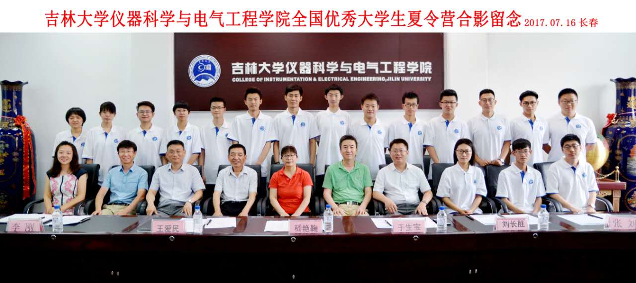 吉林大学仪器科学与电气工程学院2017年优秀大学生暑期夏令营于7月15日—17日成功举办。7月16日上午,在吉林大学朝阳校区地质宫330隆重举行了仪电学院2017年优秀大学生夏令营开营仪式。仪式由仪电学院副院长王言章教授主持,学院领导及各专业汇报人出席了开营仪式。仪式结束后所有与会人员进行了合影留念。
