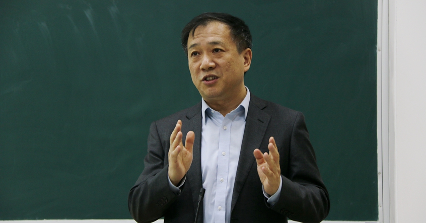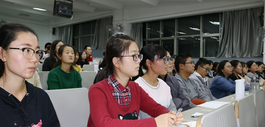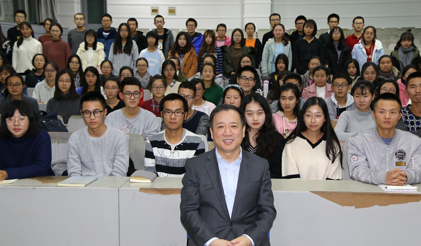 以十九大报告的结构脉络、语言风格为切入点,杨振斌对十九大报告基本内容所进行的深入分析,激发了同学们对理解十九大精神的浓厚兴趣。他带领师生逐字逐句地理解“不忘初心,牢记使命,高举中国特色社会主义伟大旗帜,决胜全面建成小康社会,夺取新时代中国特色社会主义伟大胜利,为实现中华民族伟大复兴的中国梦不懈奋斗”这一大会主题。通过认真学习、领会十九大报告,杨振斌把十九大报告全文13个部分归纳为四个方面:过去怎么样、现在是什么、今后怎么干、干事靠什么。在分析“过去怎么样”时,他结合大会召开前后新加坡、德国、英国、美国等国际媒体的评价,如“中国正处于伟大历史转折点”“十九大不是一个国内党内会议,而是一个国际会议”“中国处于几百年来最强盛世”等,以及在20世纪90年代初他赴德做访问学者的亲身经历,阐述了如何理解我们国家在过去五年切除病灶、强身健体的同时创造辉煌、创新理论所取得的巨大成就;在分析“现在是什么”时,他讲解了什么是新时代、新矛盾、新使命、新思想、新方略和新征程,强调了坚定中国特色社会主义道路自信、理论自信、制度自信和文化自信,进行伟大斗争、建设伟大工程、推进伟大事业、实现伟大梦想;在分析“今后怎么干”时,他重点阐述了优先发展教育事业的重要意义;在分析“干事靠什么”时,他突出讲授了党要管党、从严治党的意义所在。