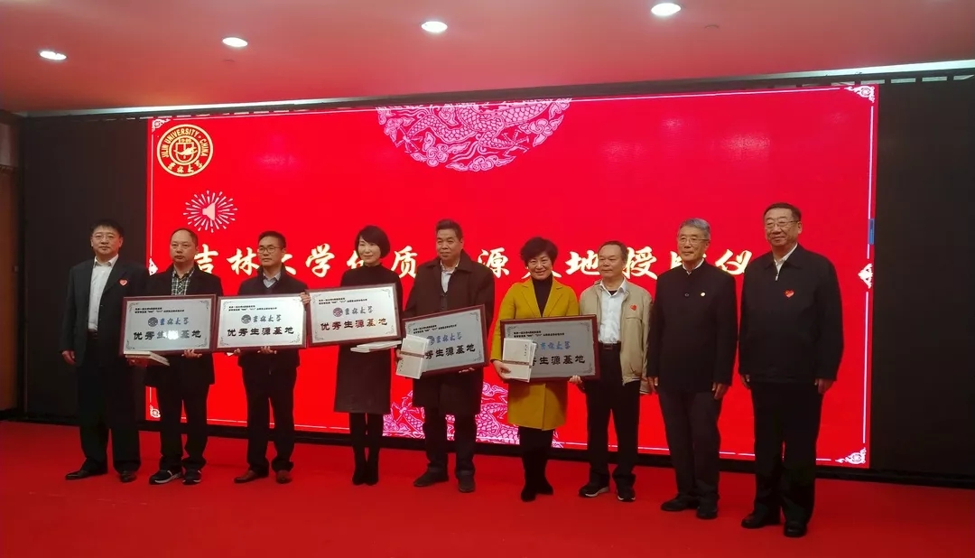 吉林大学原校长周其凤院士,中南大学原校长、吉林大学1956级地学校友何继善院士,吉林大学原党委副书记刘晓民,护理学院党委书记席海涛共同为长郡中学、长沙市一中、长郡洋沙湖中学、新晃县一中、湘潭县一中等5所省级重点中学、市级示范中学授予“吉林大学优秀生源基地”牌匾。吉林大学200余名湖南校友共同见证了授牌仪式。