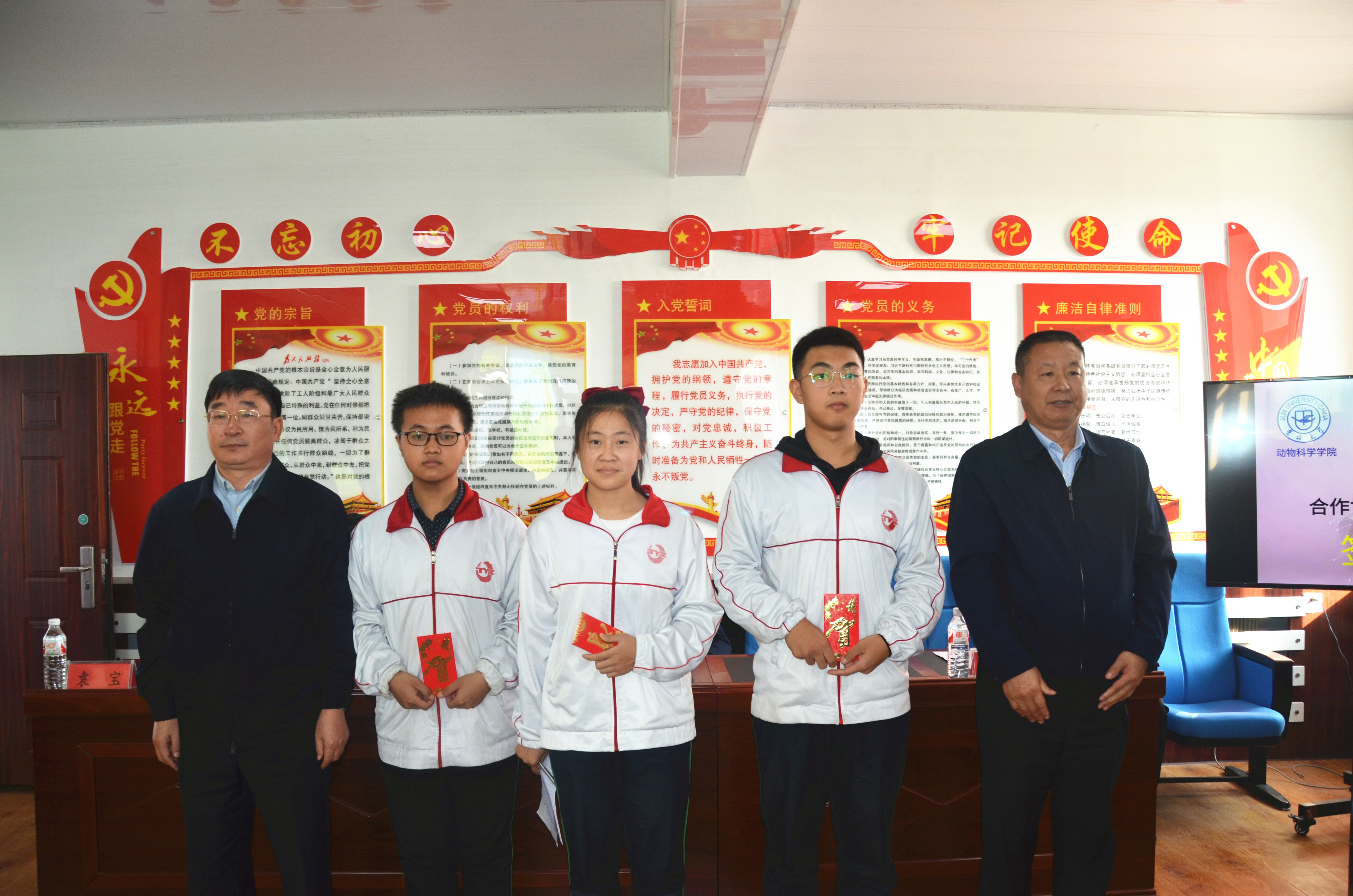 随后,通榆一中校长任国权与动物科学学院党委书记赵光军共同签订了合作框架协议,动物科学学院党委副书记曹伟光与三名受助学生分别签订了资助协议,张嘉保院长为受助学生发放了助学金。