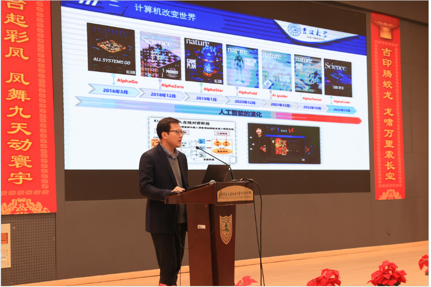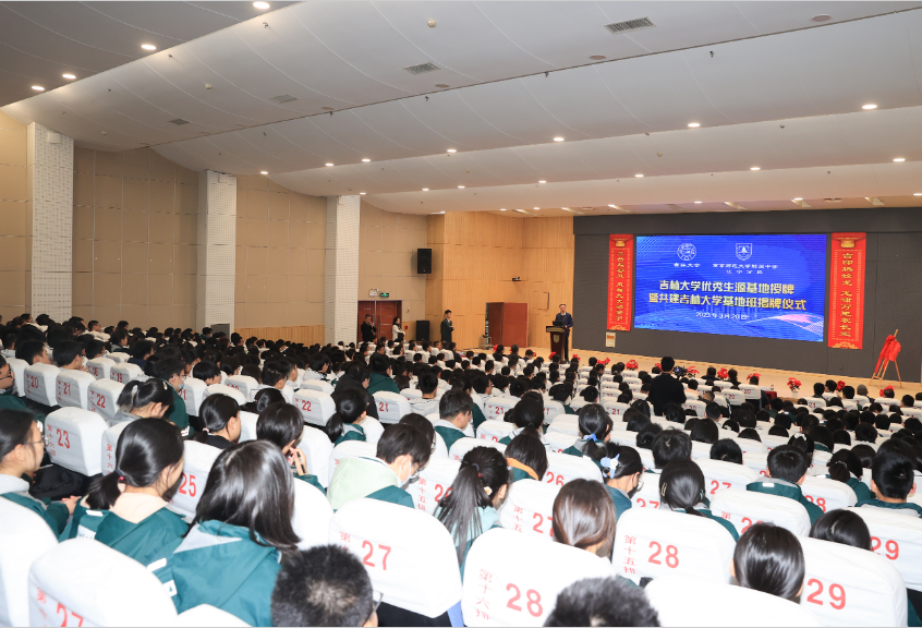 仪式上,赵宏伟与张士民共同为“吉林大学基地班”揭牌,建设工程学院党委书记衣长涛向江宁分校高中部颁授“优秀生源基地”牌,计算机科学与技术学院院长杨博为学生作计算机科普讲座,本科招生办副主任李莲英作吉林大学推介。计算机科学与技术学院党委书记宫皓宇与江宁分校副校长成中余代表双方签订战略合作协议,并就进一步推进两校之间合作展开深入交流。
