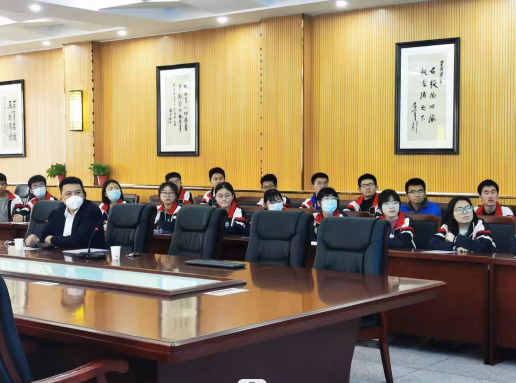 地球科学学院党委副书记李阳向菏泽一中授予“吉林大学优秀生源基地”牌匾,并与校方代表、高三班主任老师就学生发展、人才培养等方面开展座谈。