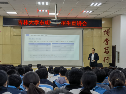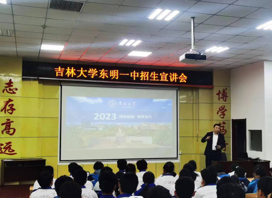 宣讲会上,与会师生观看吉林大学的招生宣传片后,李阳书记结合吉林大学的办学理念、学科建设、学生培养等情况进行宣讲,重点就吉林大学在山东省招生政策以及山东籍考生报考吉林大学的优势条件进行分析讲解,欢迎并鼓励优秀学子报考吉林大学。工作组老师向与会学生们发放了招生宣传单和学校纪念品。宣讲会现场全程气氛热烈,东明县一中师生反响热烈。