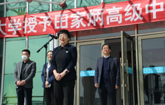 首先,七台河市田家炳高级中学校长白继贞主持召开揭牌仪式并致开幕词,代表学校全体教师对吉大招生宣传组一行表示热烈欢迎。市教育局领导副校长包维新、副校长常春飞及各部门负责人、学生代表参加仪式。于湘晖院长代表吉林大学向田家炳高级中学授牌并合影留念,她表示生源基地的建立,能够为优秀学生提供更多机会和渠道,让他们了解吉林大学的优势特色,为他们未来发展提供更好的支持和帮助。
