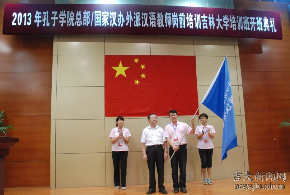 7月20日上午,2013年孔子学院总部∕国家汉办外派汉语教师岗前培训吉林大学培训班开班典礼在吉林大学国家汉办东北基地学术报告厅举行。出席开班典礼的有国家汉办培训督导、原北京语言大学党委书记王路江、国家汉办师资处关嘉彤女士、吉林大学党委书记陈德文及国际合作与交流处、国际语言学院、公共外交学院有关负责人。典礼由吉林大学国际合作与交流处处长兼公共外交学院院长刘德斌主持。