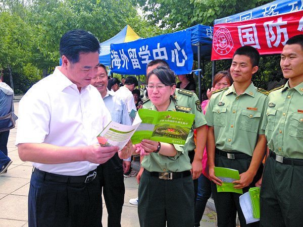 6 月15 日上午,我校在中心校区五月花广场举 行2013 年校园开放日暨高考招生咨询会。我校所属 的38 个本科招生单位及教务处、毕业生就业指导中 心等部门近500 名咨询人员到现场,与5000 多名考 生和家长就他们关心的各种招生问题进行了面对面 的沟通和交流。清华大学、浙江大学等39 所全国知 名院校参加了咨询会。吉林省教育厅副厅长席岫峰、 省招生办主任岳强亲临现场对活动给予指导。我校 领导李元元、王胜今、赵继、韩晓峰、张晓林、蔡 莉、张向东、刘晓民、杜莉、王冠军、陈岗等莅临现场。