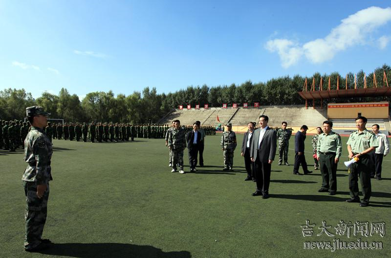 嘹亮的军歌、整齐的步伐,在不到一周的时间里,来自五湖四海的2013级新生们便以崭新的姿态成为吉林大学校园中一道青春靓丽的风景线。9月2日,吉林大学校长李元元、党委副书记兼副校长韩晓峰在学校武装部等有关部门负责人的陪同下视察2013年学校军训工作开展情况,看望参加军训的2013级学子。
