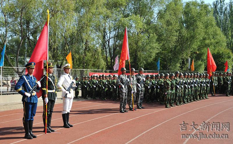 在庄严的国歌、嘹亮的军歌和激昂的校歌声中,阅兵式正式开始。党委书记陈德文在驻吉林大学选培办主任邸守林的陪同下检阅了阅兵队伍。2013级新生以整齐划一的动作、铿锵有力的呐喊展示着军训的优异成果,体现了不畏风雨的气势和迎战未来的勇气。