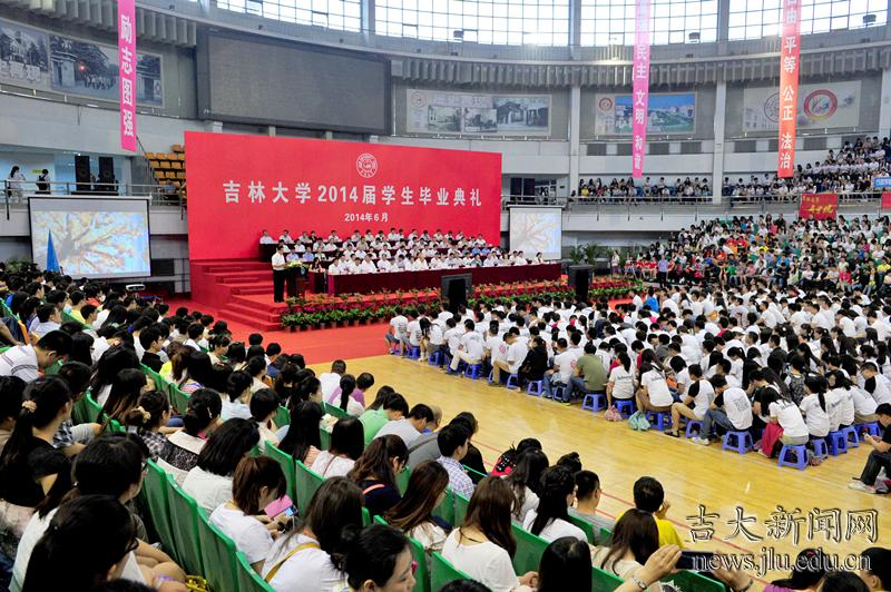 6月26日,吉林大学2014届学生毕业典礼在中心校区体育馆隆重举行。校领导陈德文、李元元、王胜今、韩晓峰、蔡莉、张向东、刘晓民、王冠军、陈岗,副校级干部李凡,教育部特约联络员兼教育部巡视专员王文金,校友、共青团吉林省委书记程龙,校董、吉林康乃尔集团董事长宋治平,各学院、各研究生培养单位负责人,校内相关职能部门负责人及教师、校友、学生家长、毕业生代表参加了毕业典礼。典礼由副校长张向东主持。