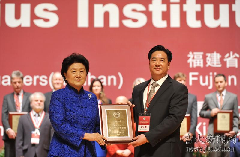 12月7日上午,第九届全球孔子学院大会开幕式在厦门市国际会议中心举行,吉林大学获得“孔子学院先进中方合作院校”称号,在获奖的十所院校中排名第一。国务院副总理、孔子学院总部理事会主席刘延东向吉大校长李元元颁发获奖证书,这是吉大首次获此殊荣。