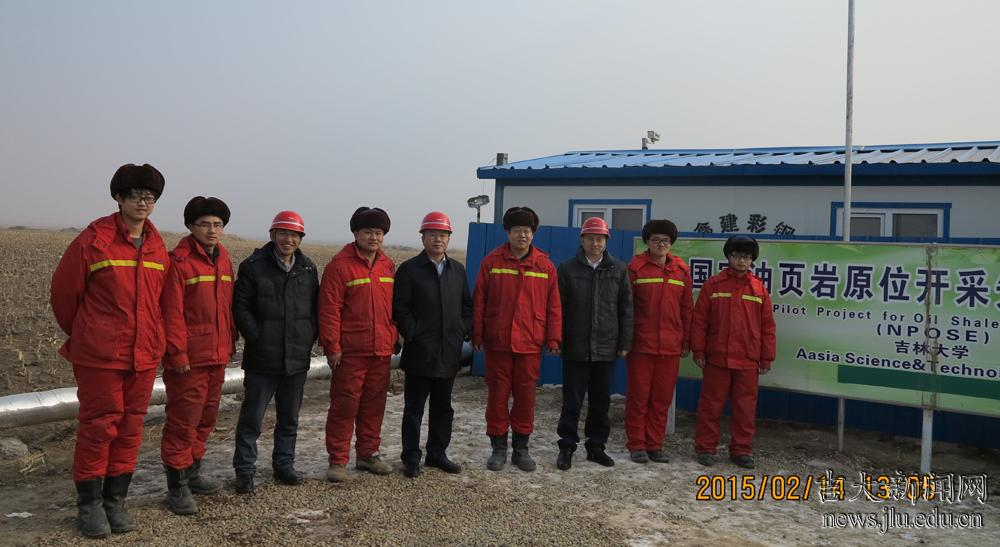 “国家油页岩原位裂解先导试验工程”是吉林大学承担的国家跃升计划“潜在油气资源(油页岩勘探开发利用)产学研用合作创新项目”的标志性工程。自2013年10月7日开工建设以来,先后完成了地面工程建设、地下钻井工程、地面设备安装调试等工程,突破了压裂、高温换热、隔热、和地下水侵入等关键技术难题。目前正在进行地下油页岩层连续不间断的注热试验,各系统设备和仪器运行平稳,注热效果明显。
