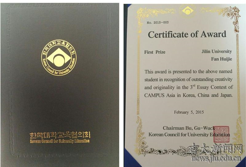 此外,吉大文学院2011级本科生朴晶慧的《亚洲校园体验随笔》一文获得此次大赛的奖励奖。