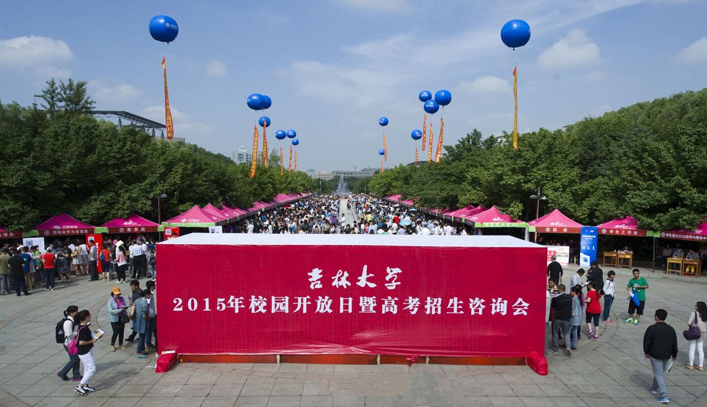 6月13日上午8时,“吉林大学2015年校园开放日暨高考招生咨询会”在中心校区五月花广场正式举行。北京大学、清华大学、中国人民大学、南开大学等31所“985工程”高校及全国部分知名院校应邀参加了咨询会。我校教务处、学生工作部、国际合作与交流处、学生就业创业指导与服务中心、驻吉林大学后备军官选拔培训工作办公室、团委、招生办公室及43个本科学院参与了活动,学校宣传部、保卫处、后勤集团也给予大力支持。活动过程中,吉林省教育考试院院长李桢亲临现场给予指导,我校校长李元元、党委副书记韩晓峰、副校长陈岗等莅临现场,对各展位工作人员表示慰问,并与现场考生及家长互动交流。