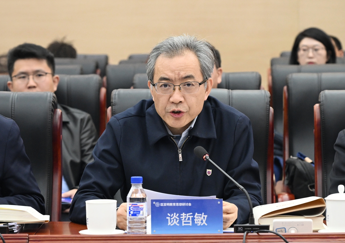 谈哲敏表示,匡亚明先生是吉大人和南大人共同爱戴的老书记、老校长。他先后担任吉林大学、南京大学党委书记兼校长,为这两所中国高水平大学的发展作出了卓越贡献、留下了不朽丰碑。两所大学分别竖立了先生塑像,也都以他的名字命名楼宇、道路、荣誉学院和试验班。两所大学以同样的方式表达对同一位老校长的崇敬与爱戴之情,这在中国高等教育历史上应该是绝无仅有的。虽然先生已经离开我们,但他的思想和精神早已融入吉大和南大的精神血脉,成为我们“饮水思源”的精神源头之一。